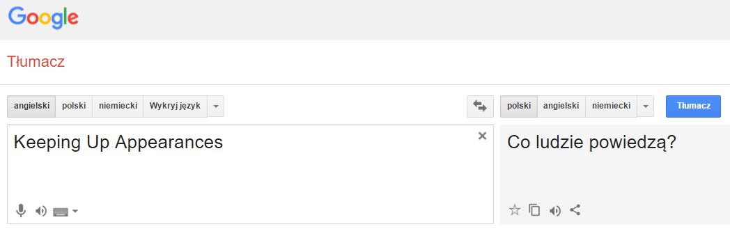 A skoro już mowa o tytule, to niech mi ktoś powie jakim sposobem z „Keeping Up Appearances”, czyli ”Stwarzania pozorów” powstało ”Co ludzie powiedzą?”?!
